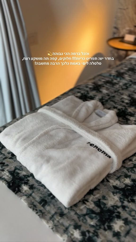 מיטה זוגית אמיתית, מזרן סופר נוח, מצעים מפנקים ואפילו תפריט כריות (!). מסביב חיכו לנו פרטים קטנים שעושים הבדל גדול, חלוקים נעימים, קפה ותה איכותיים, נטפליקס חופשי (ראינו המאמן קרטר), קאווה ושוקולדים, בושם לבנדר ולבנדר אמיתי ליד המיטה. אפילו סלסלת פיקניק מוכנה לים. הם באמת חשבו על הכל.