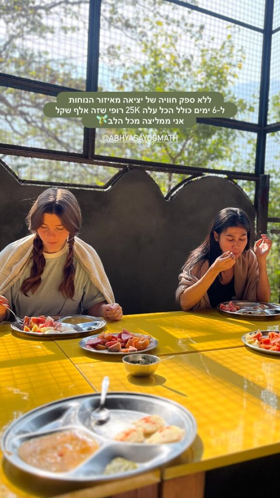 עלות הריטריט: 25,000 רופי הודי (בערך 1,200 ש"ח)